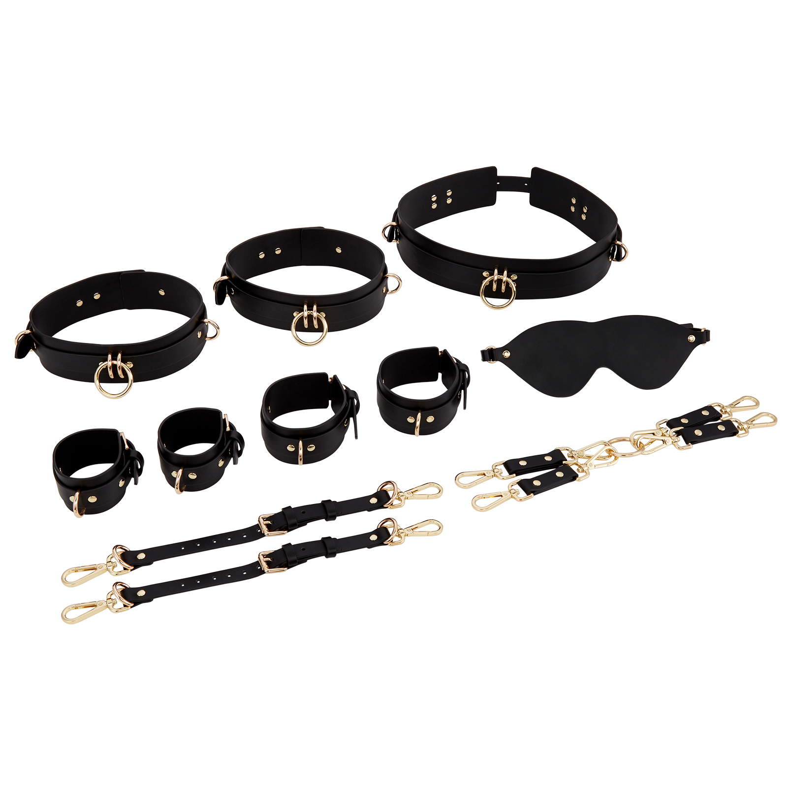 Overall this is by far my favorite bondage set I own! I really like the adjustability and customization with the plethora of attachment points. This is very durable and does its job of making sure the consenting wearer (submissive) cannot take it off or slip out. This gives the dominant complete control! The leather is also very easy to clean compared to other bondage sets with fabric. This means that any fluids (I'll let you use your imagination) get stuck on it they can be cleaned off very easily. The shackles and buckles are made of beautiful gold metal. I recommend this to anyone looking to expand and accelerate their BDSM gear. This for sure has ignited a new passion for my partner and I!